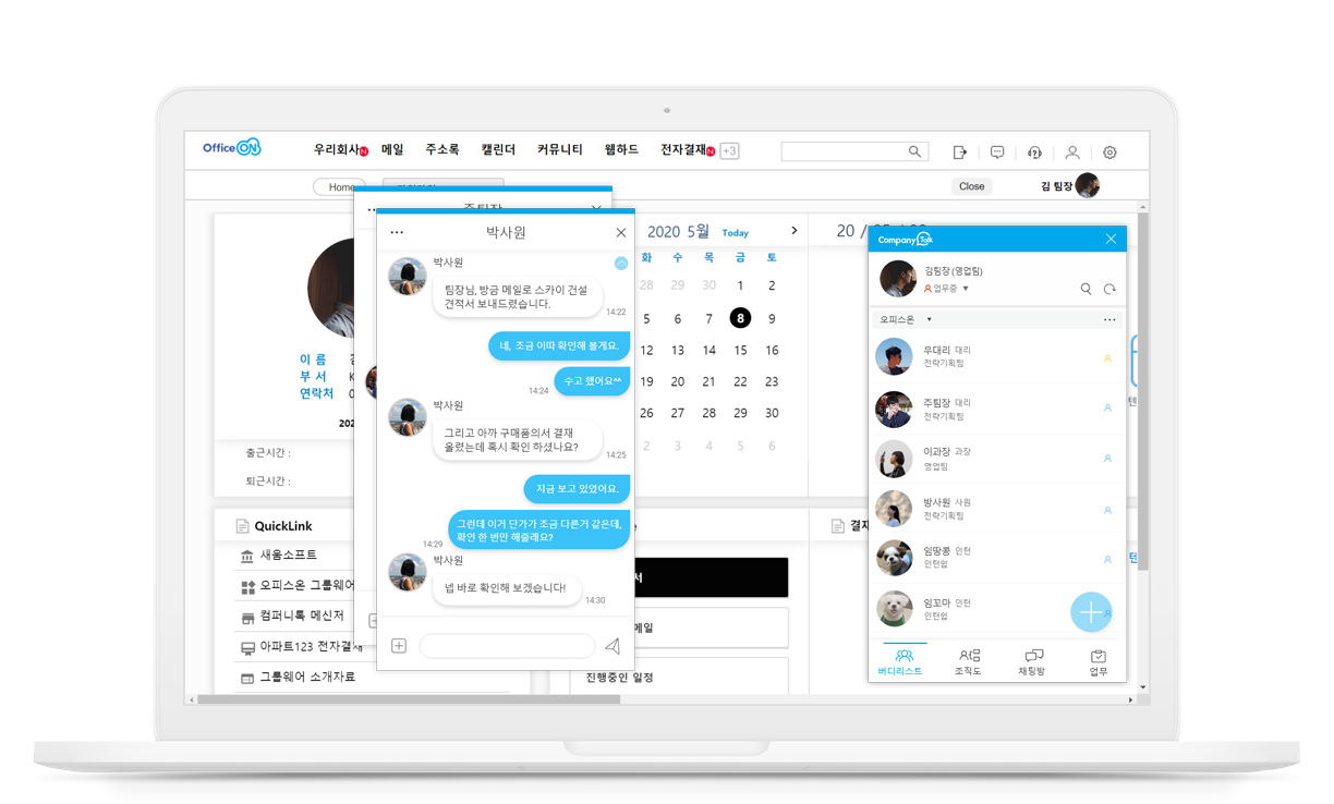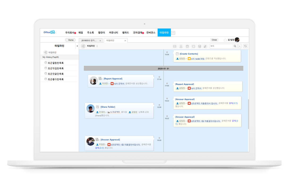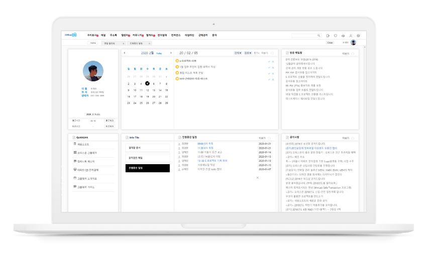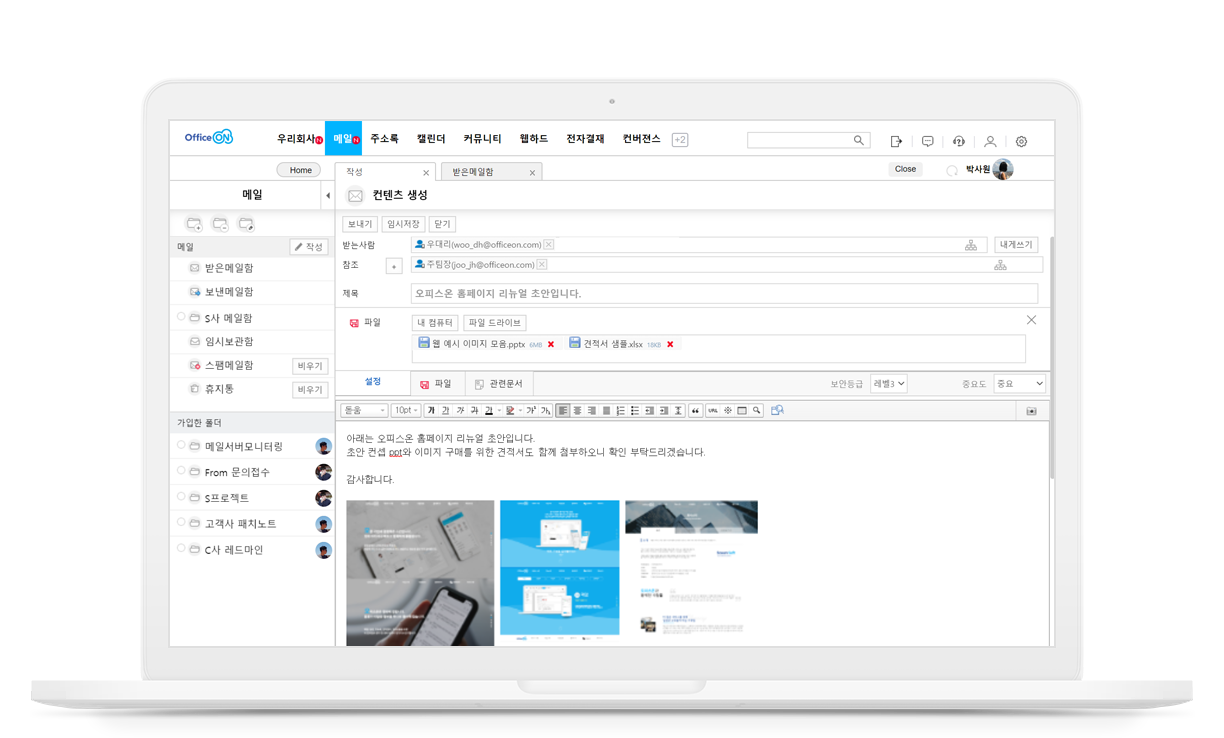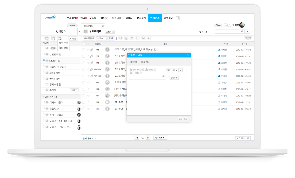 오피스온 컨버젼스를 통해 파일, 메일, 일정, 게시판 등의