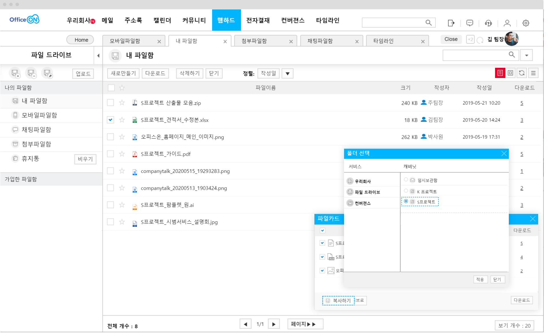 회의내용, 작업 현장사진 등 보관하고 공유하고 싶은 파일을 모두 즉시 업로드하여 관리할 수 있습니다.