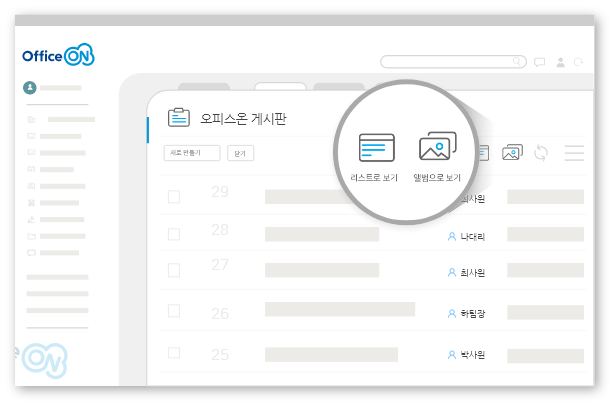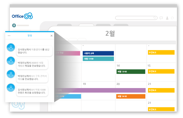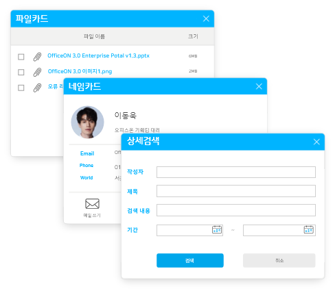 오피스온은 모든 곳에서 통합 UI를 사용하여 다양한 정보에 빠르게 접근이 가능합니다.
