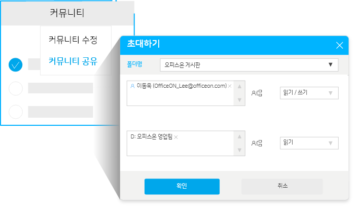 간단한 회사 / 부서 / 개인폴더 공유와 공유된 폴더에 가입만으로 구성원들은 같은 컨텐츠를 바라보며 컨텐츠 협업 지원